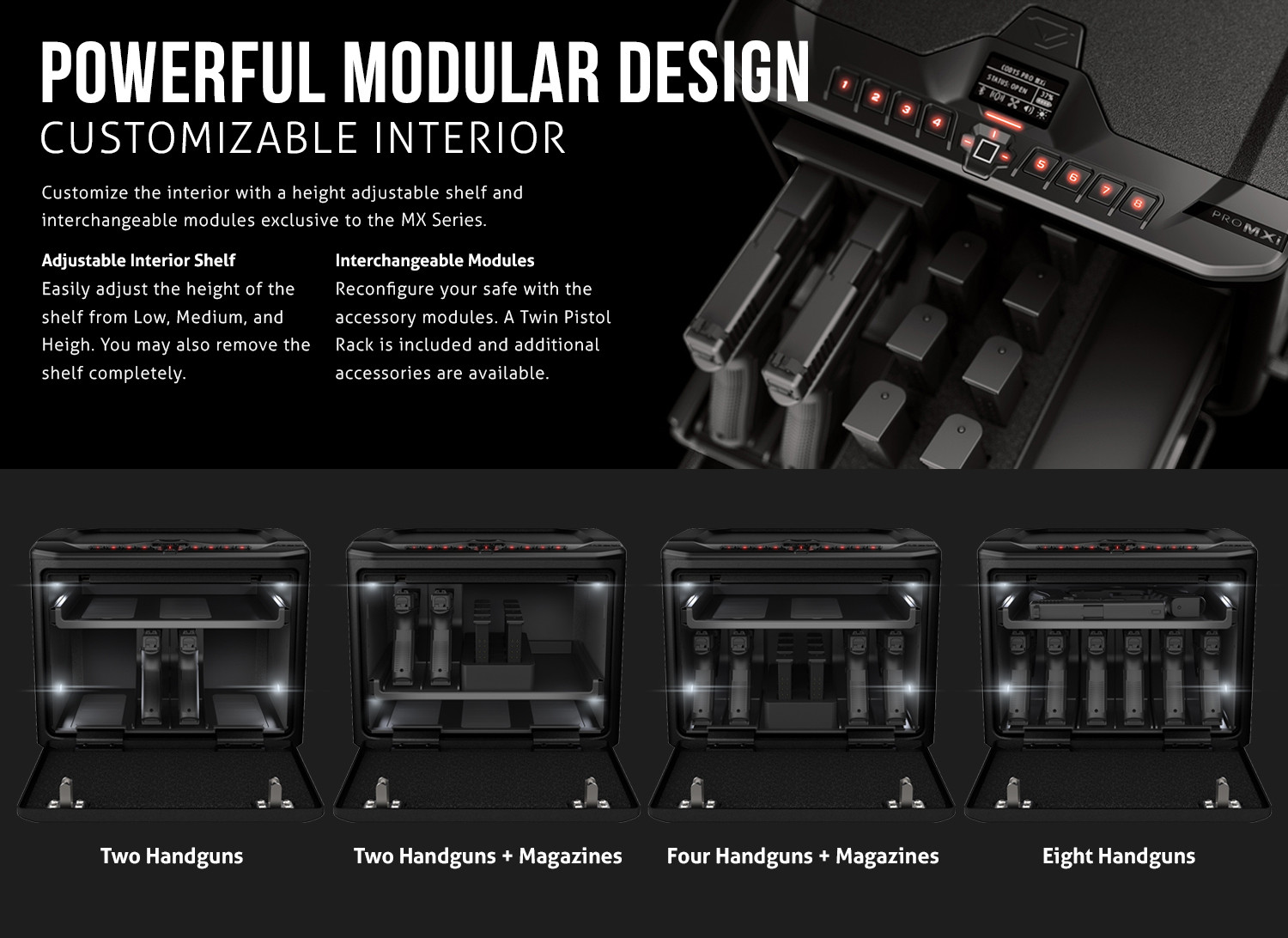 | Included Additional Items/Accessories | Bluetooth Tech + Biometric Quick Access - 8 Pistol Capacity |